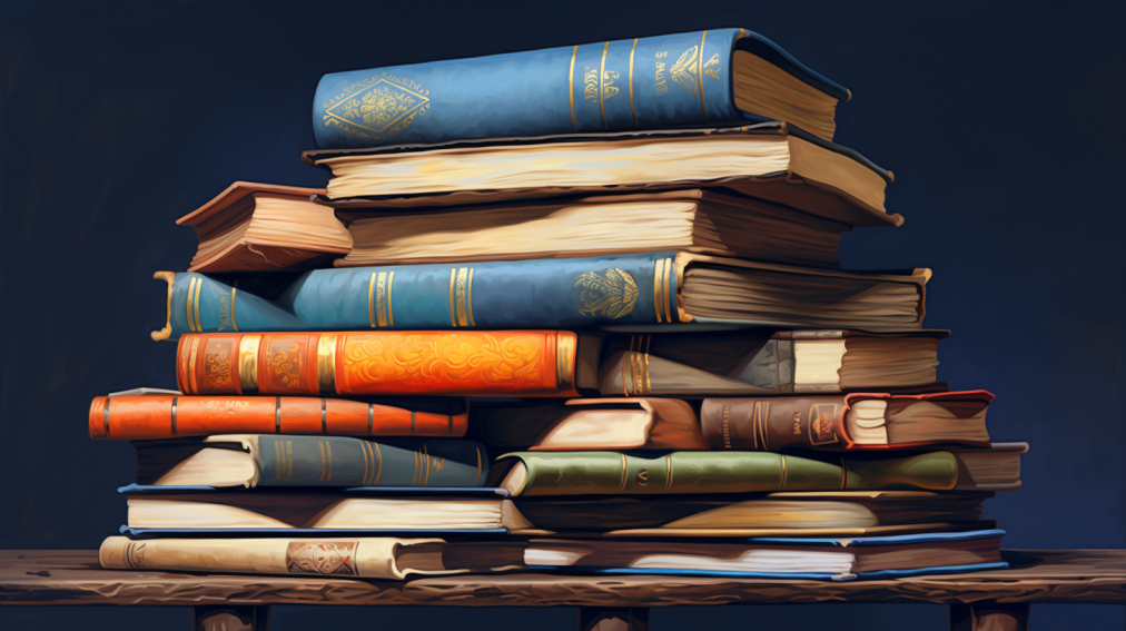 L'immagine rappresenta dei libri in pila su un tavolo.